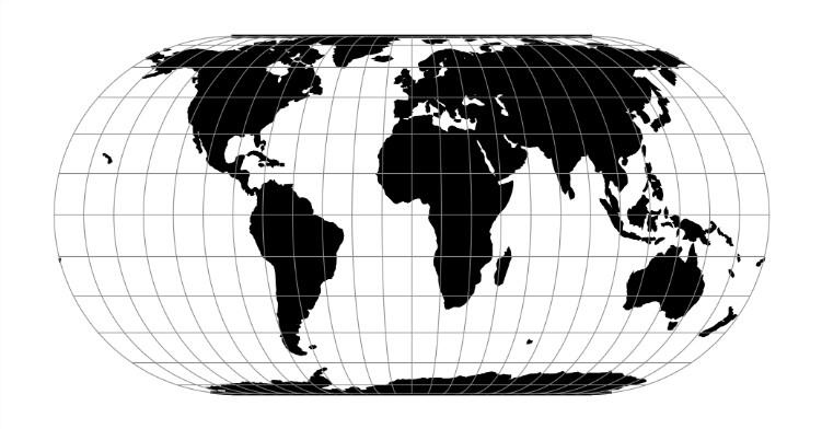 1. 以格林威治为中心的埃克特IV等积地图投影。