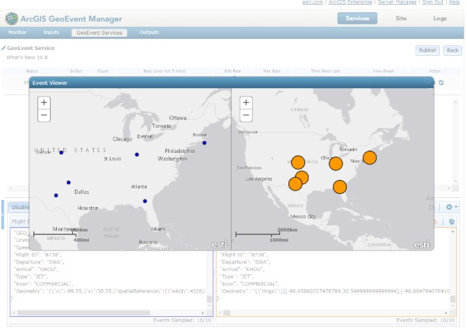 1. 使用事件查看器在GeoEvent Manager中可视化采样的实时数据。