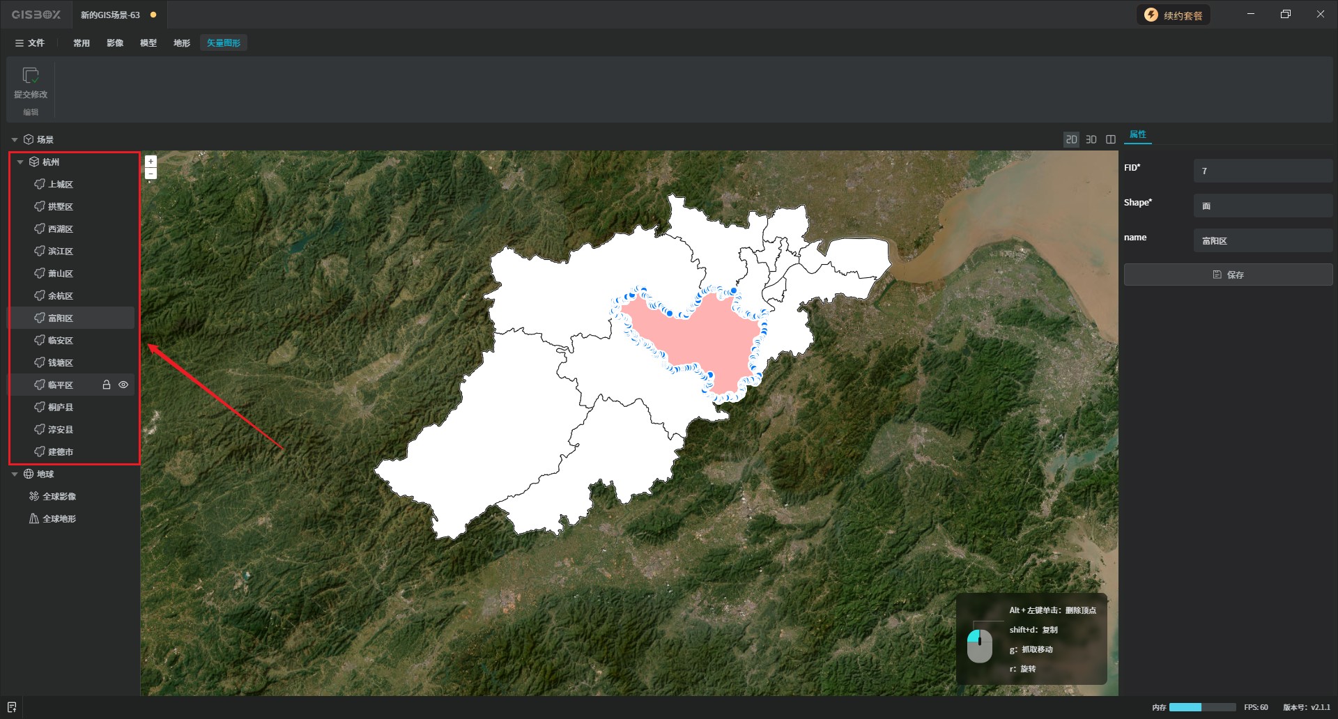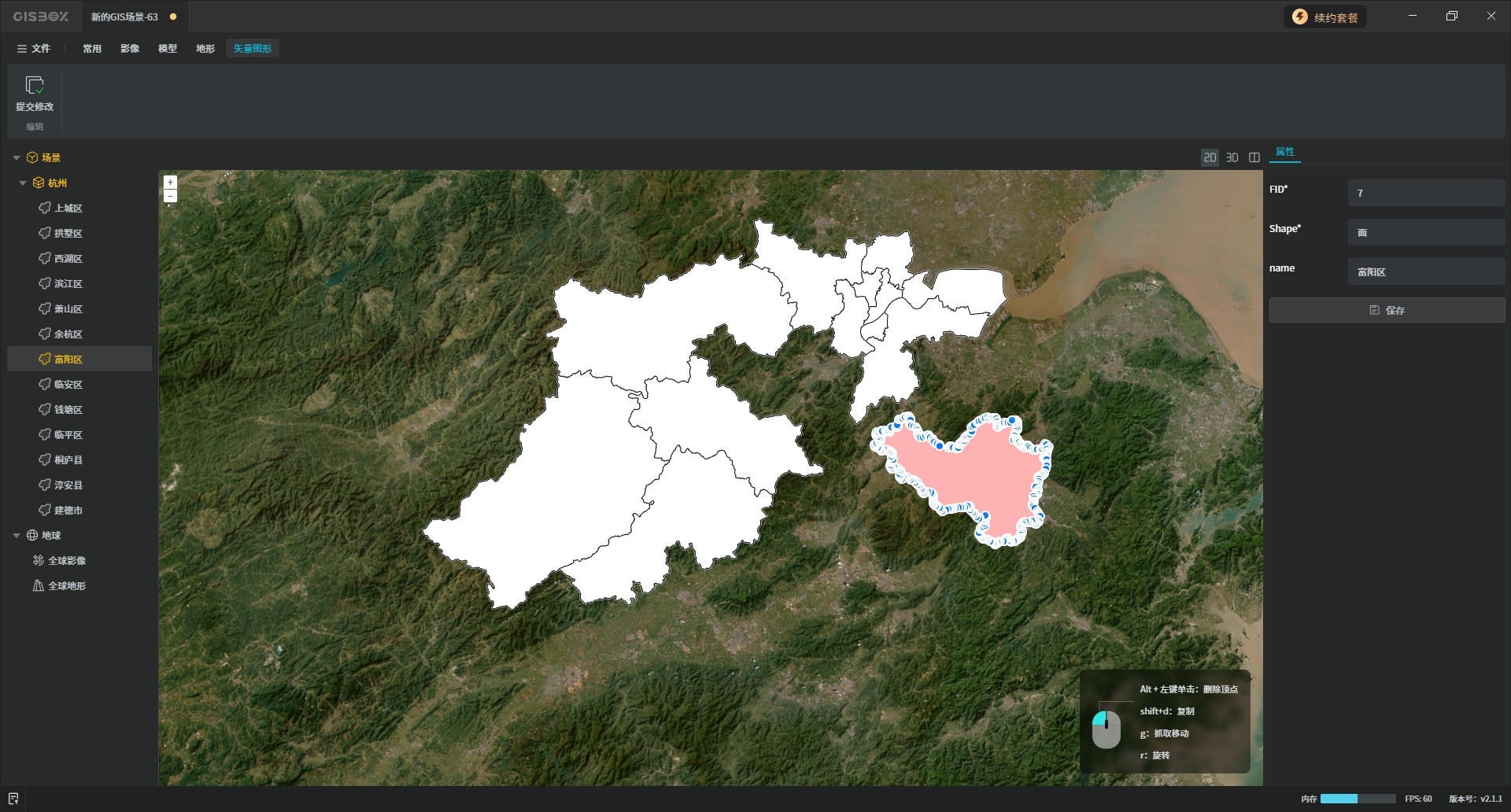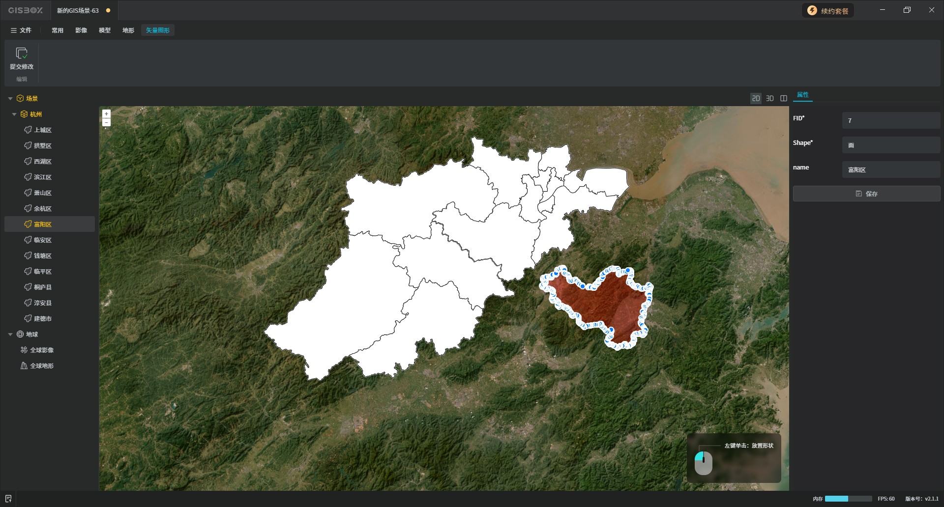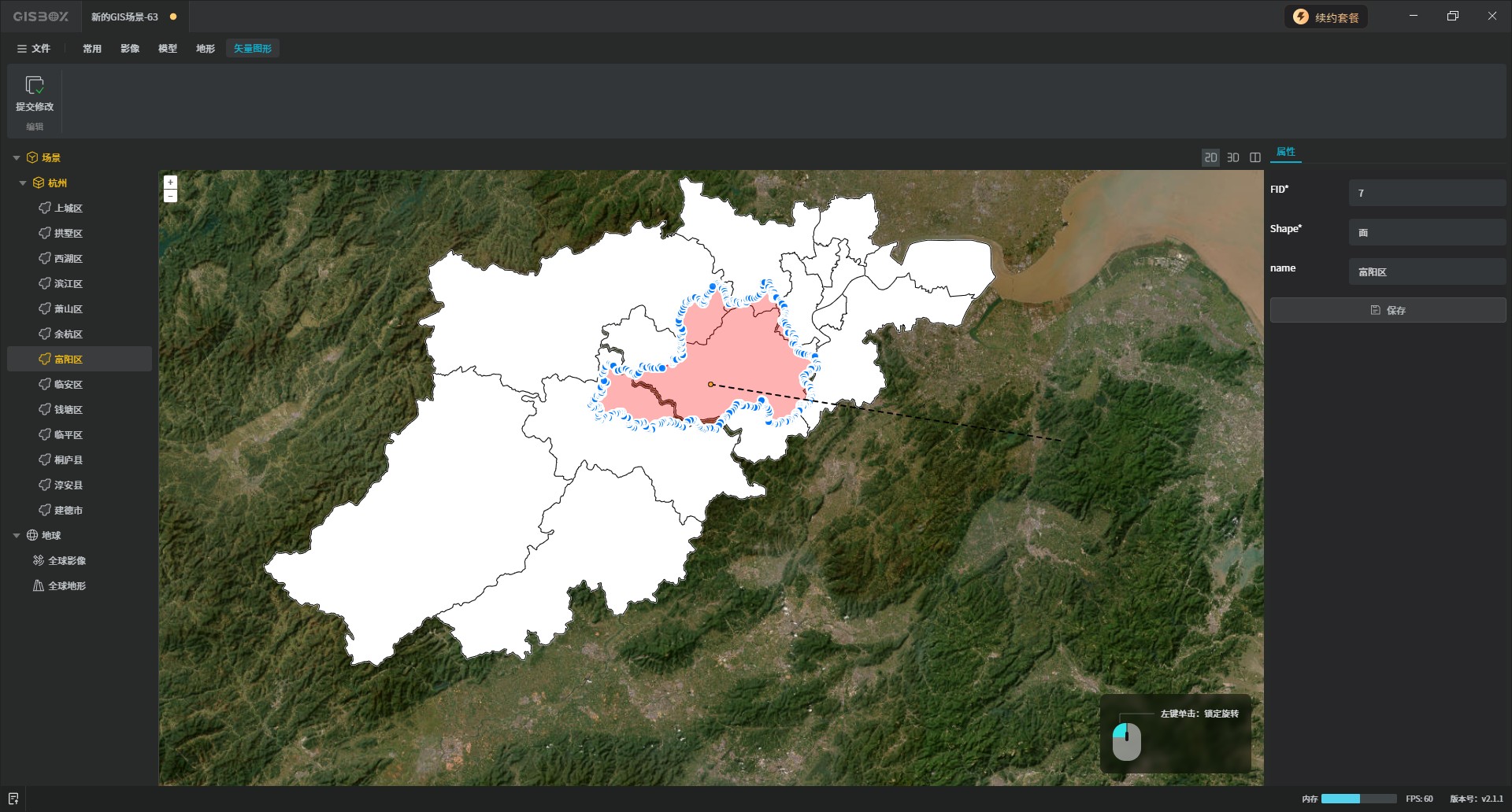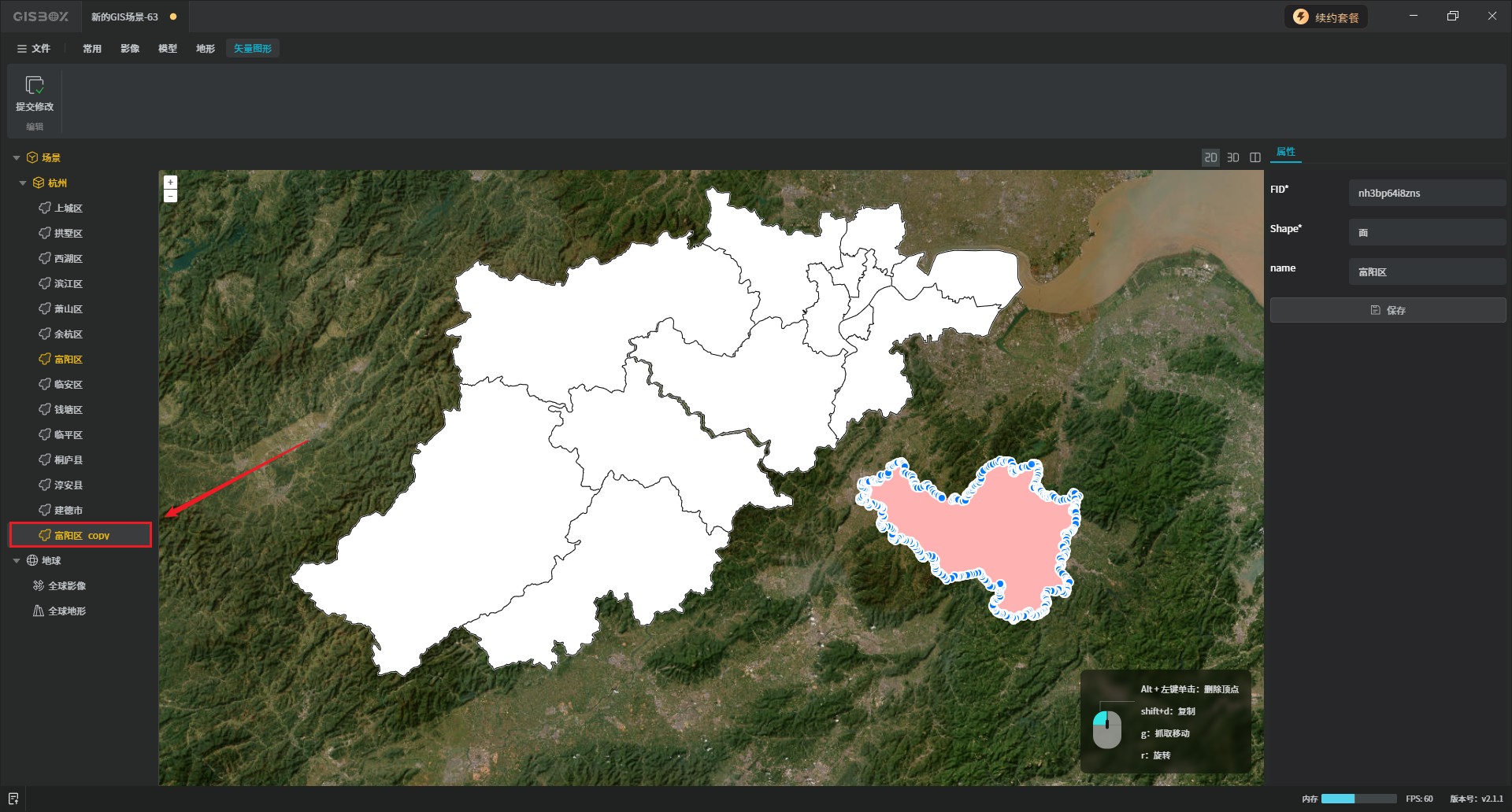 通过上述操作,用户可以轻松实现矢量区域的拖动(G键)、旋转(R键)和复制(Shift+d)功能,GISBox的轻量化设计有效提升了矢量编辑的便捷性与效率,帮助用户更高效地完成场景编辑任务。