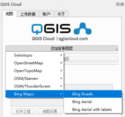 1. 在QGIS Cloud插件面板选择“添加背景图层”。