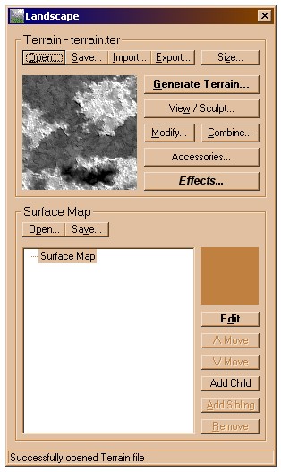 1. 当打开文件夹时,Terragen会显示你的地形高度图的俯视视图景观窗口。