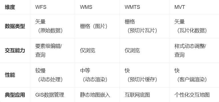 3D数据的服务发布主要发布为3DTiles和Terrain格式。主要的是在2D数据的服务发布中,提供了四种发布服务的协议类型,如:WFS、WMS、WMTS、MVT。