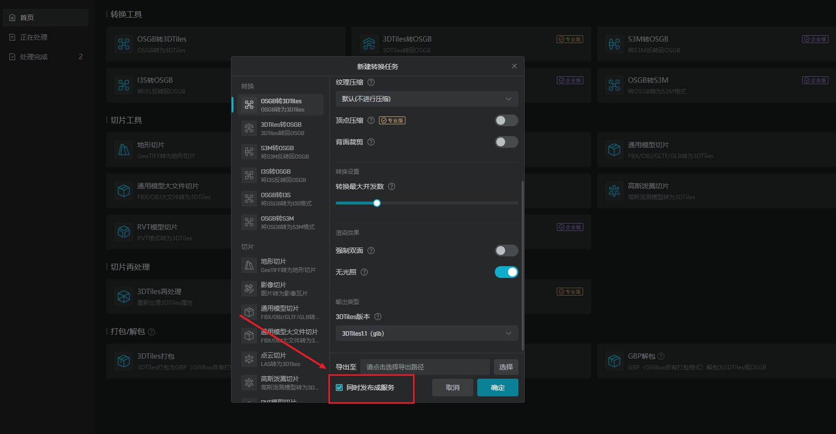 2、在切片转换中,也可以由切片转换工具切片完成之后,直接发布到服务当中。