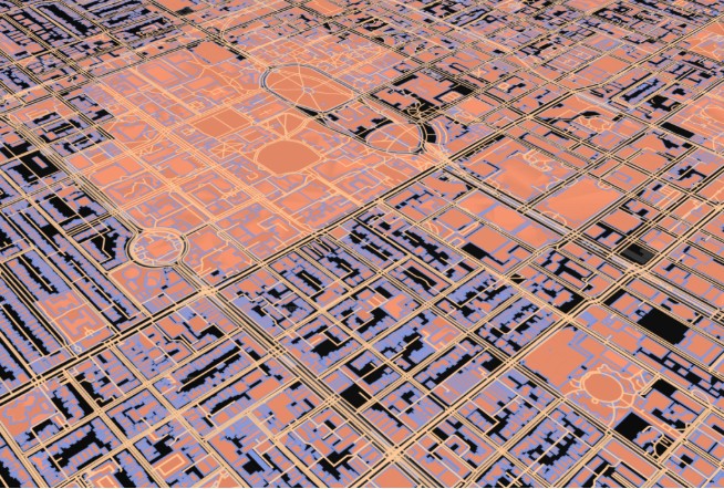2. OpenStreetMap获取的城市街道和建筑数据。