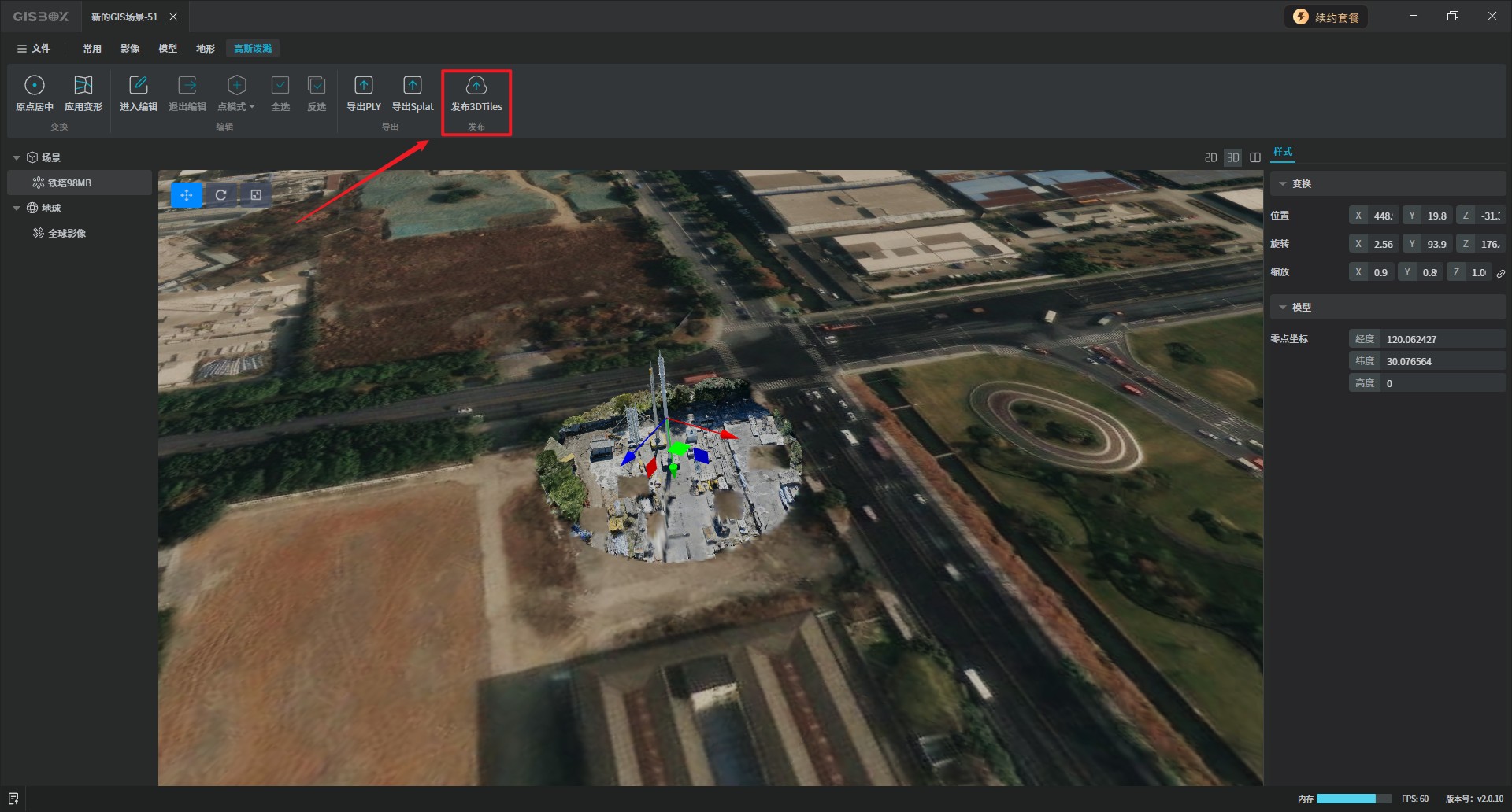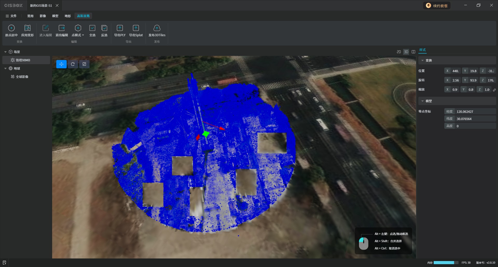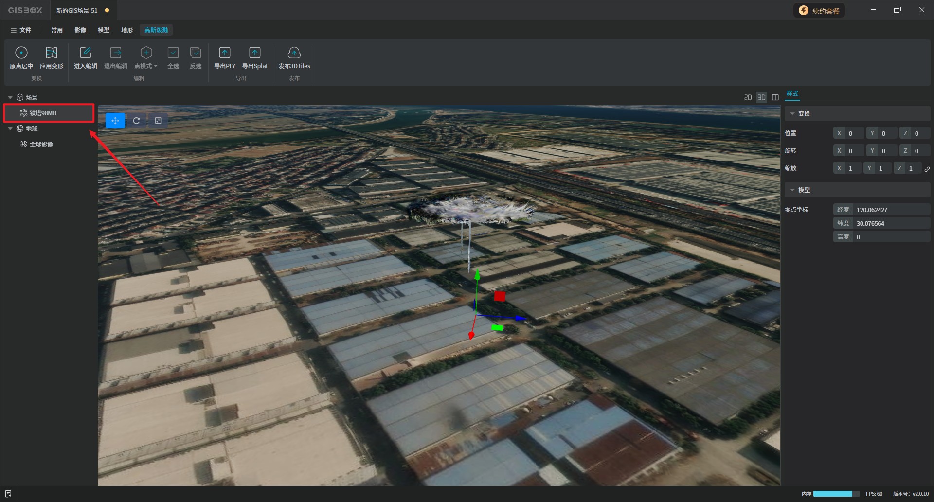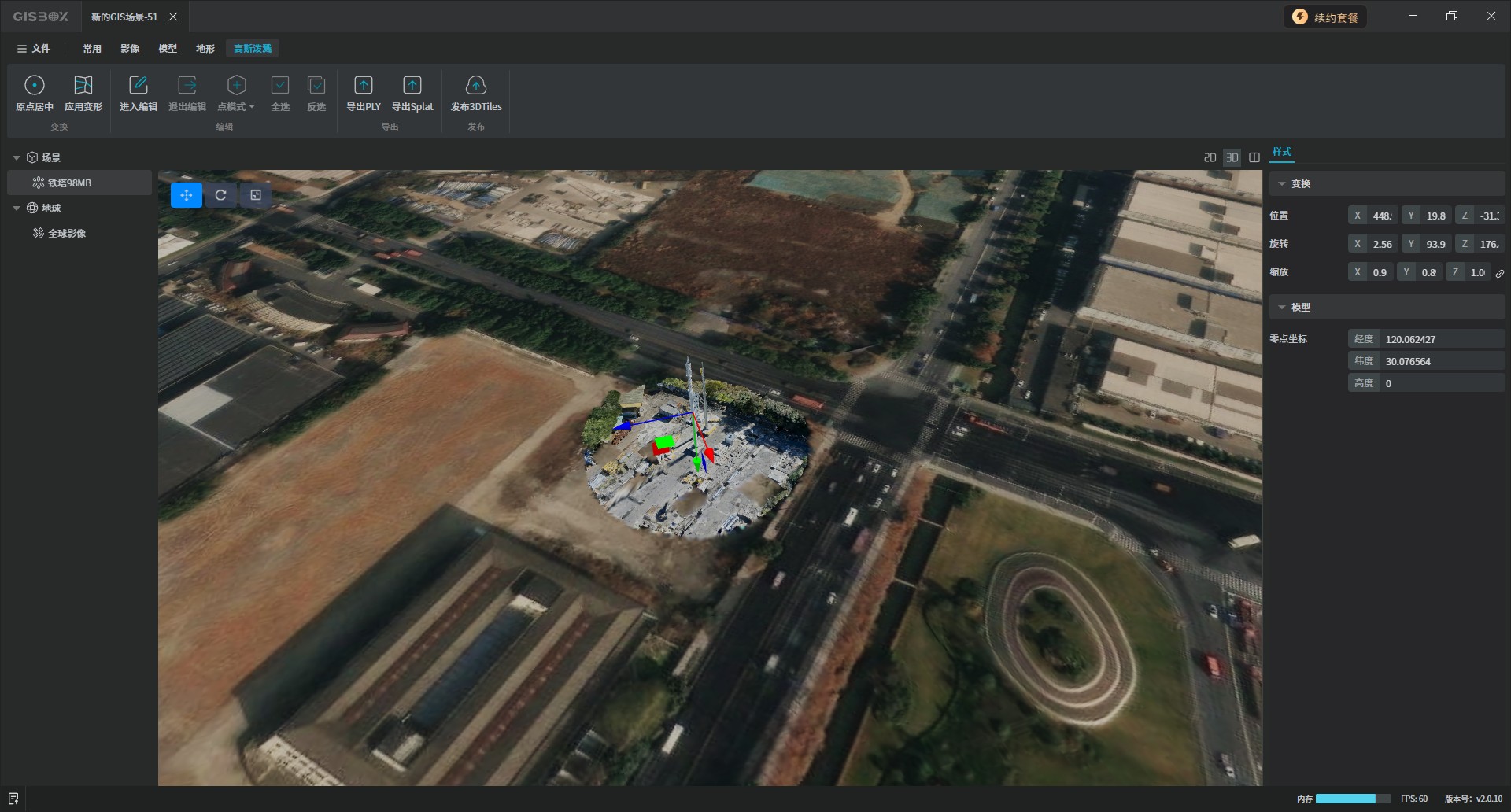 GISBox(GIS 工具箱)在场景编辑模块中支持PLY/Splat高斯泼溅模型的导入、对齐和编辑,同时支持将高斯泼溅文件导出并发布为3DTiles服务,并在Cesium中加载的全流程。本文将为大家介绍一下具体的操作。