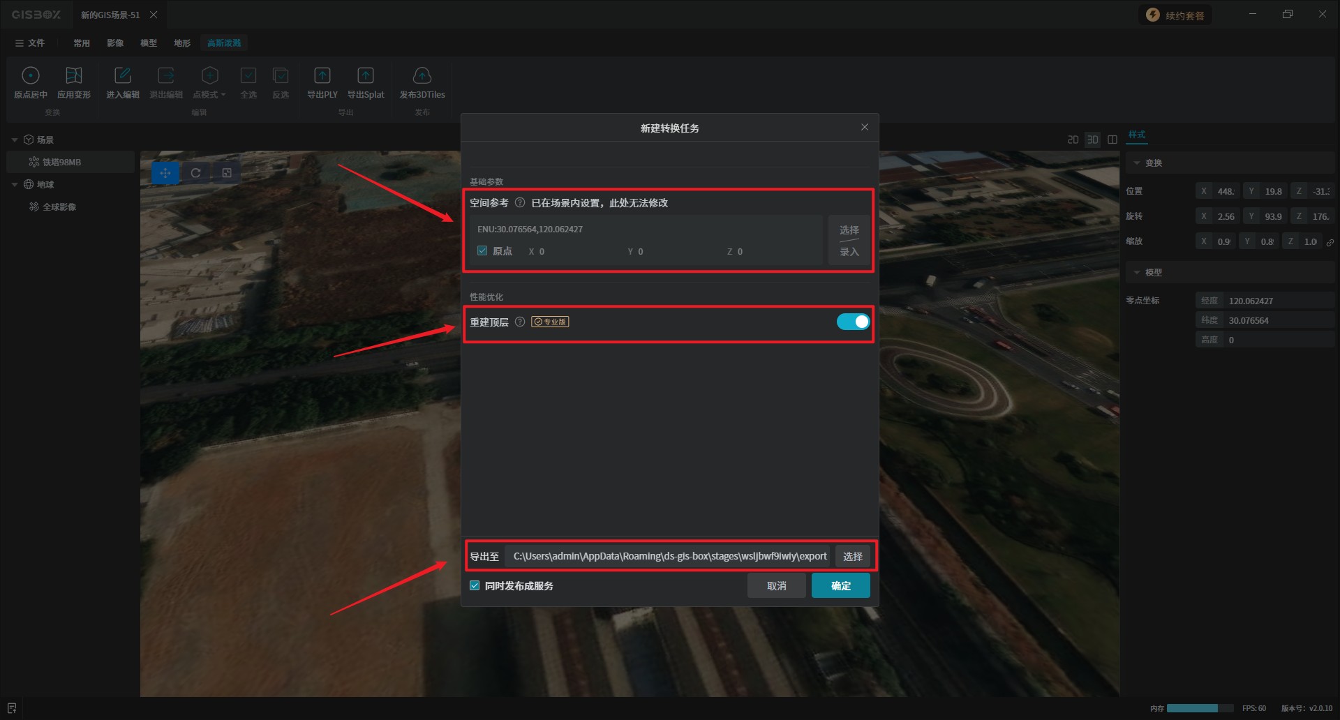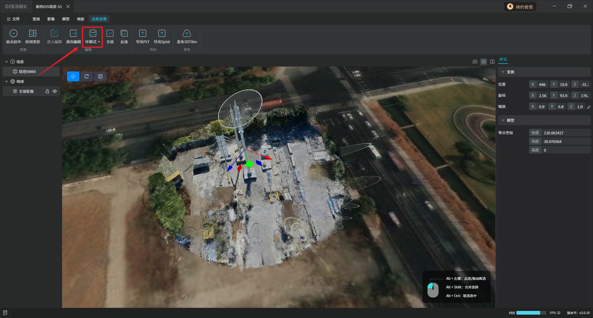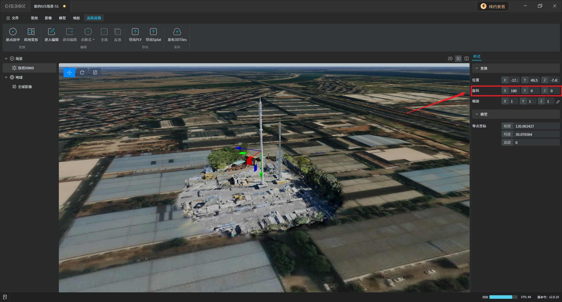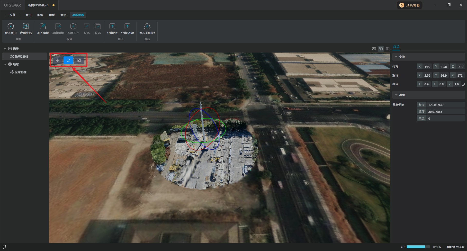 GISBox(GIS 工具箱)在场景编辑模块中支持PLY/Splat高斯泼溅模型的导入、对齐和编辑,同时支持将高斯泼溅文件导出并发布为3DTiles服务,并在Cesium中加载的全流程。本文将为大家介绍一下具体的操作。