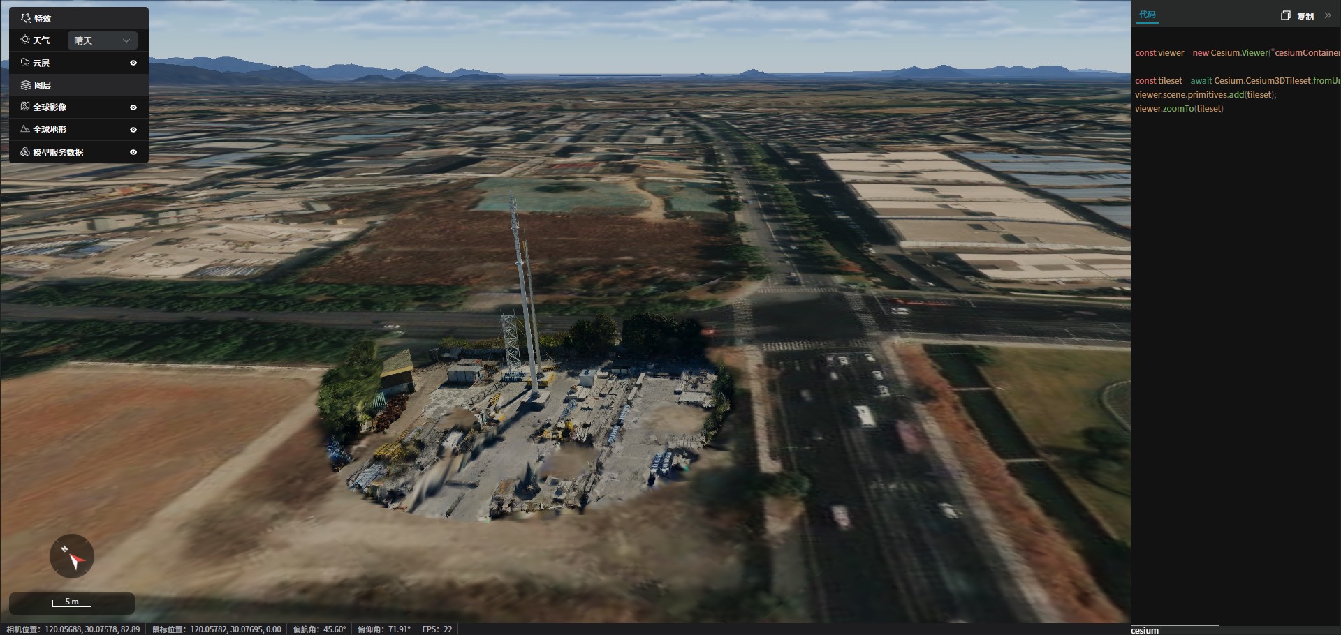 点击“cesium”预览按钮,即可在浏览器中预览效果,如下图所示: