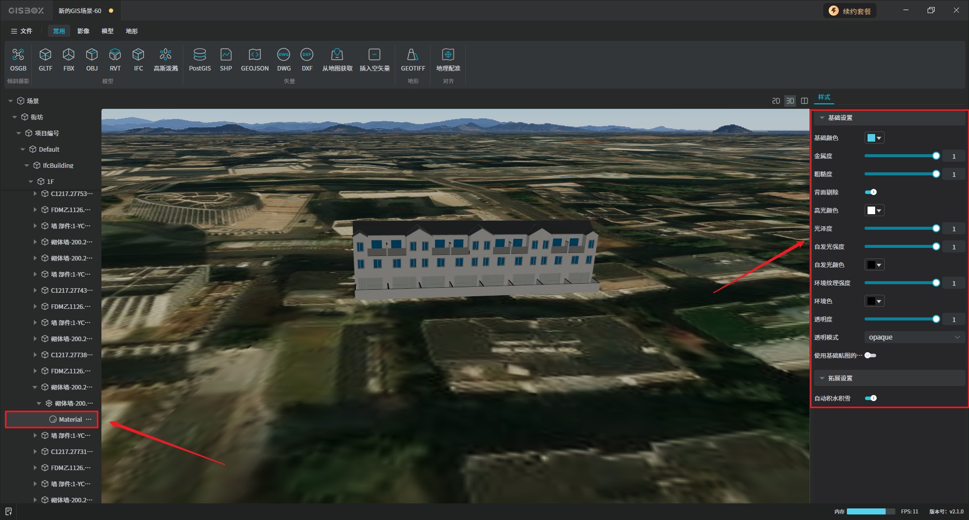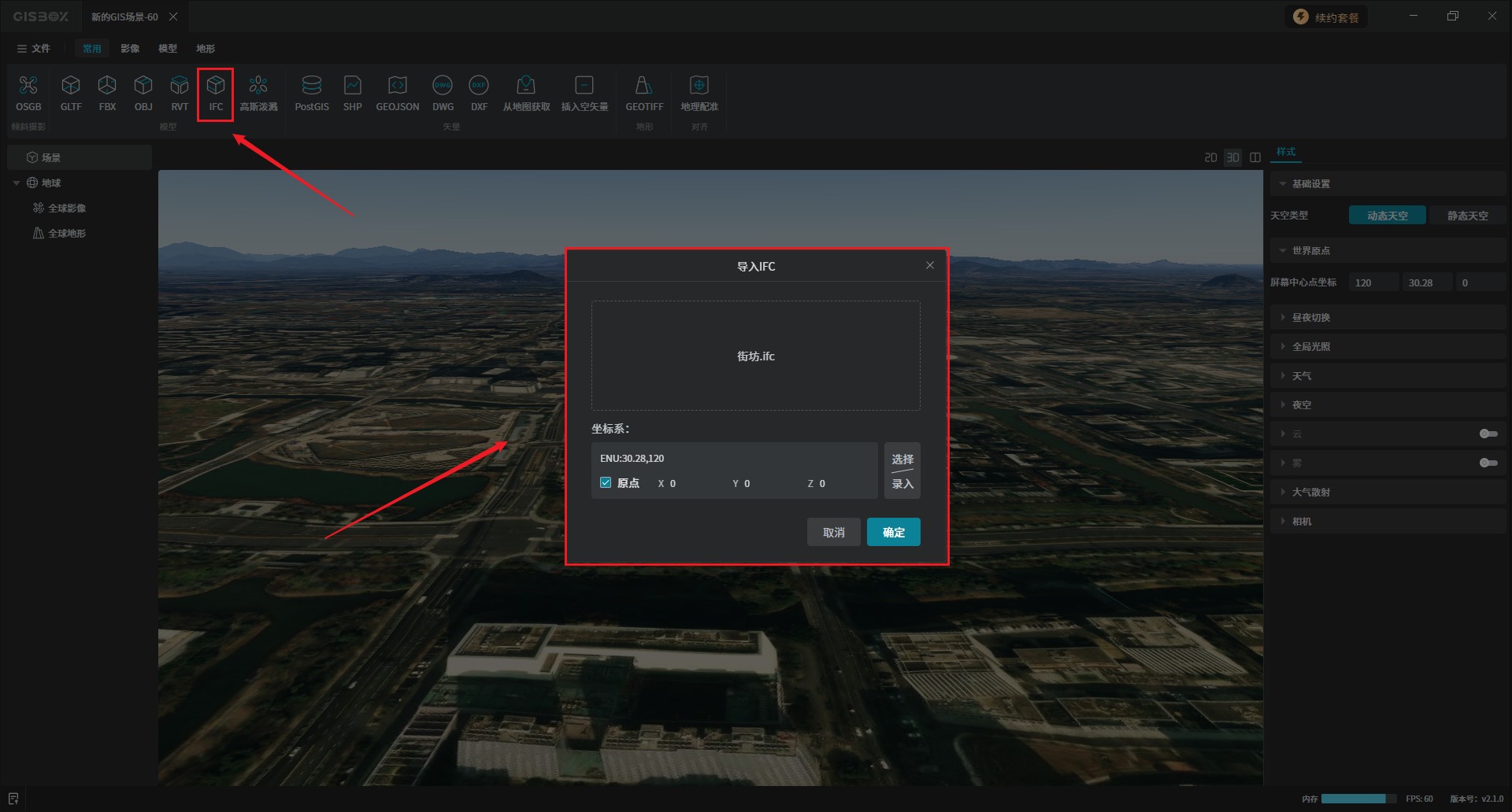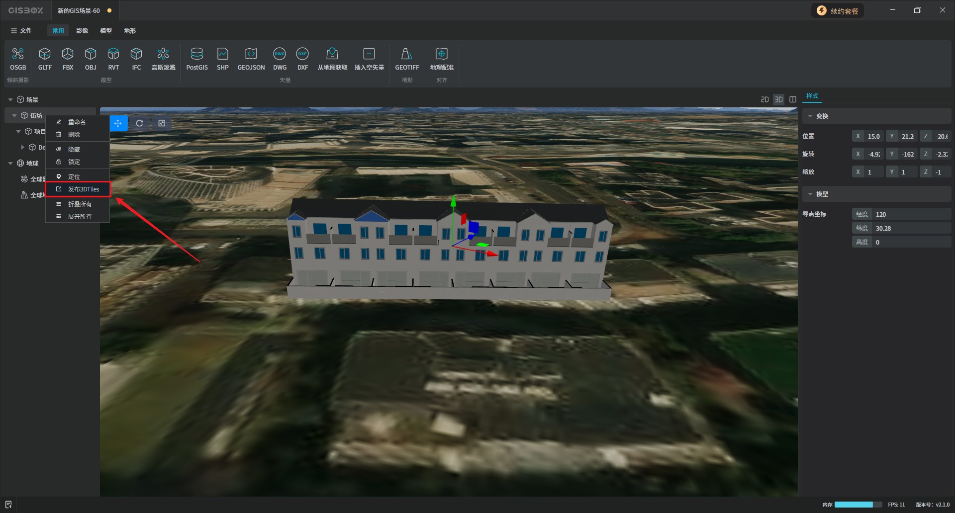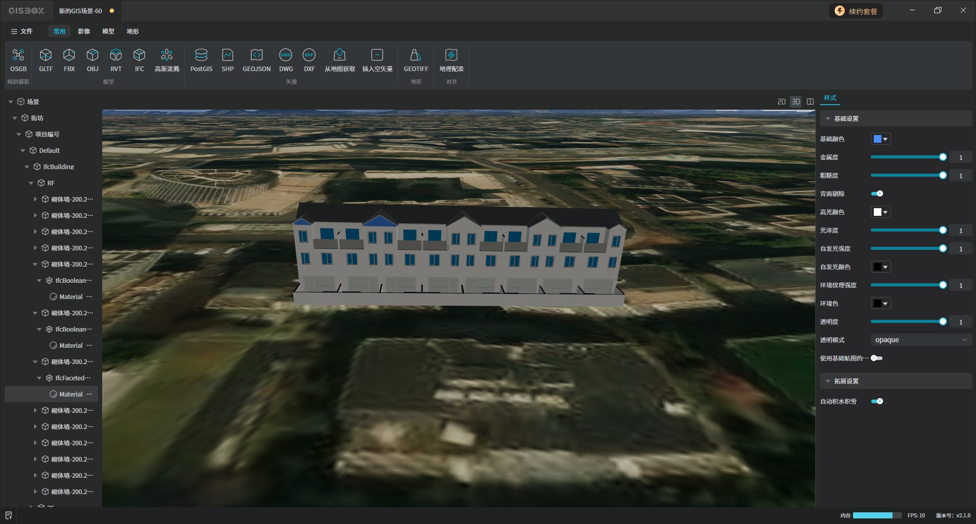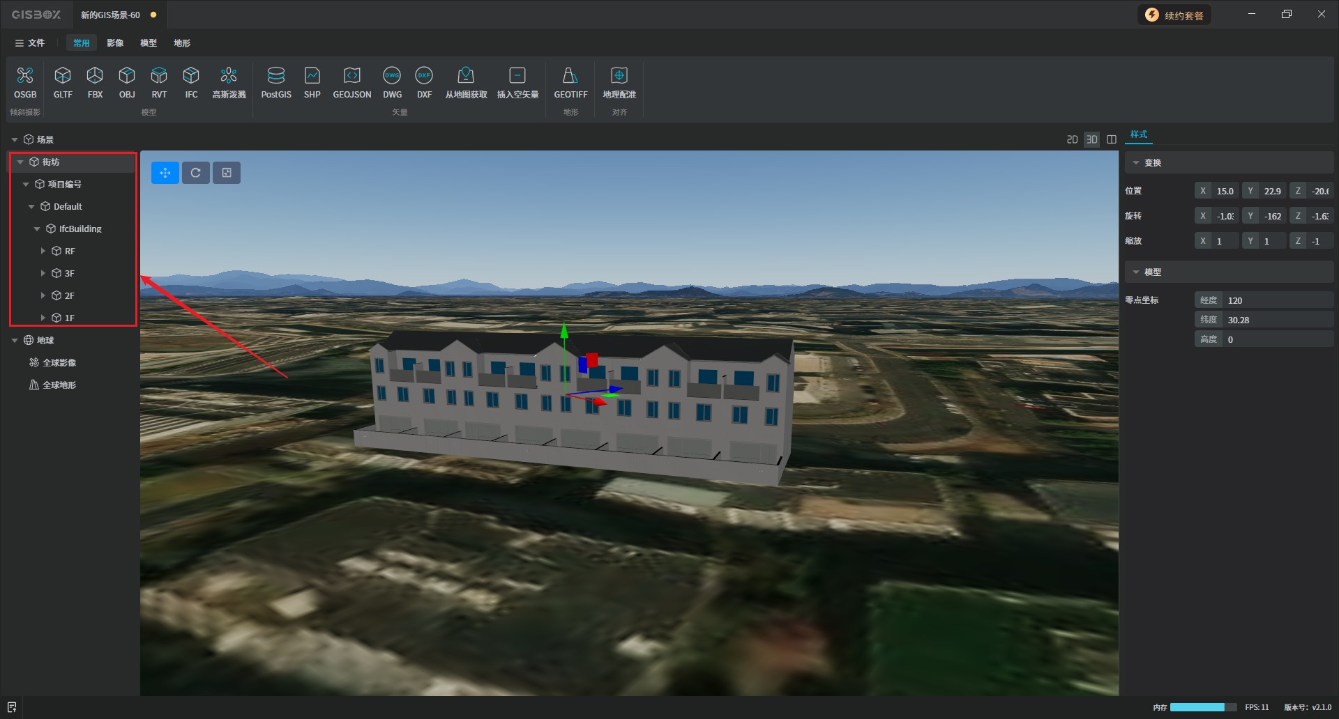 GISBox(GIS 工具箱)在场景编辑模块中支持导入一些BIM模型,其中包括的RVT和IFC,并支持对BIM模型进行编辑并发布为3DTiles格式文件,本文将为大家介绍一下IFC文件编辑和导出的具体操作。