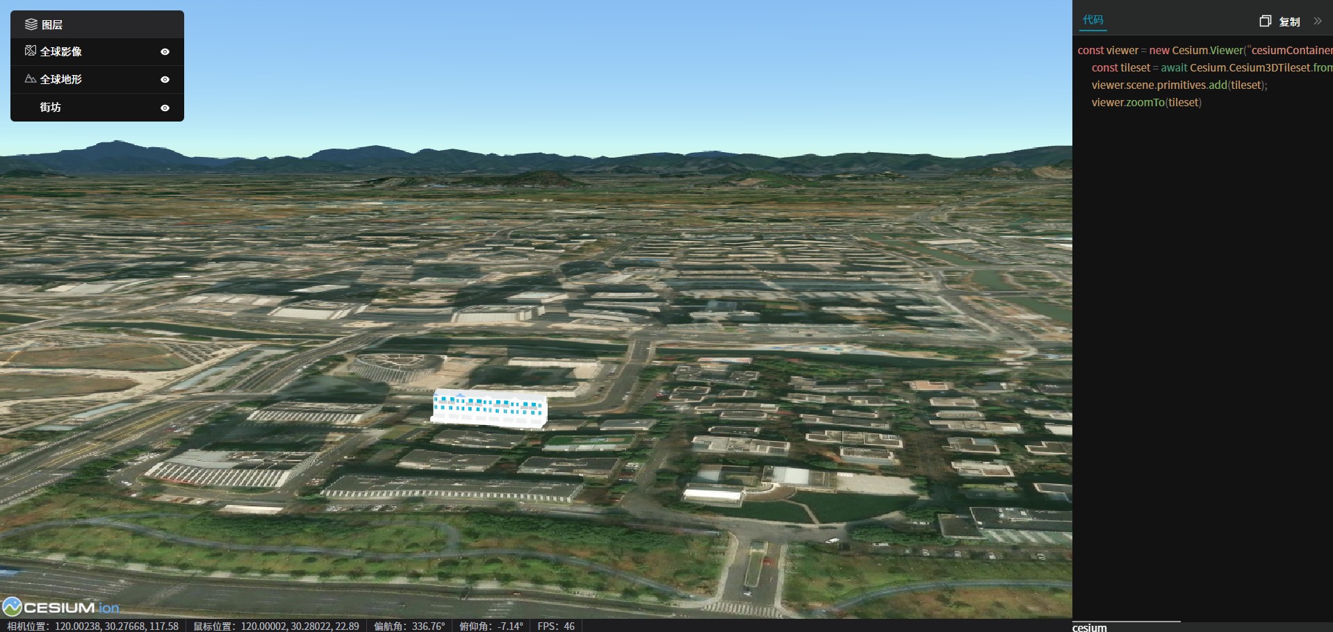 点击“cesium”预览按钮,即可在浏览器中预览效果,如下图所示: