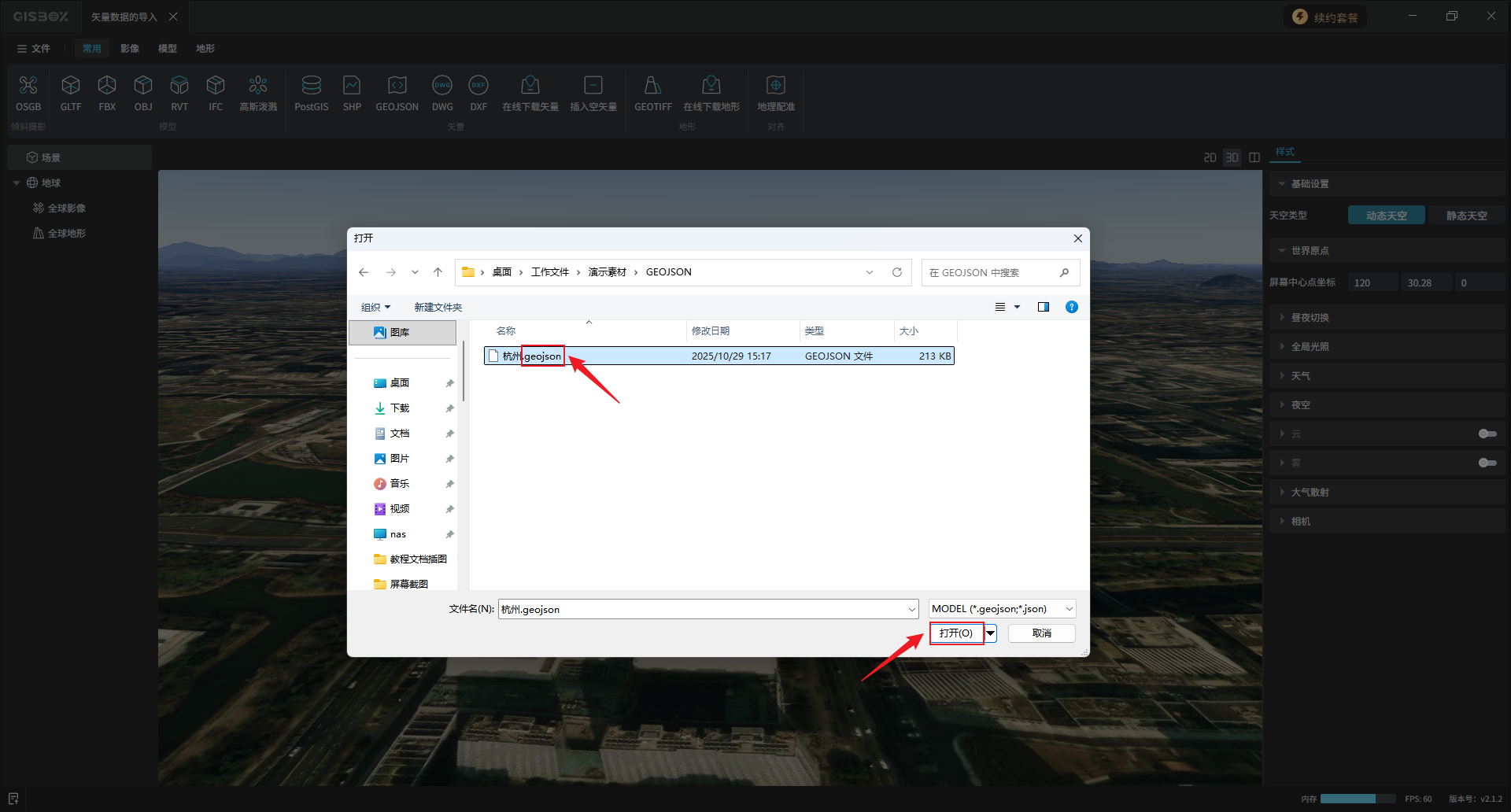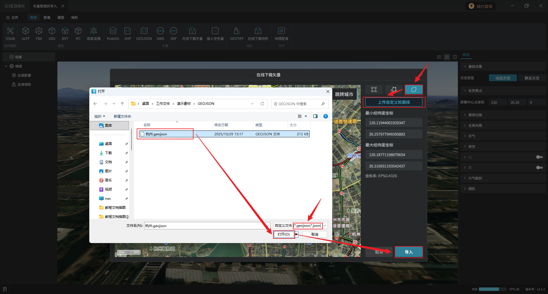 选择geojson类型或json类型的文件,点击“打开”。