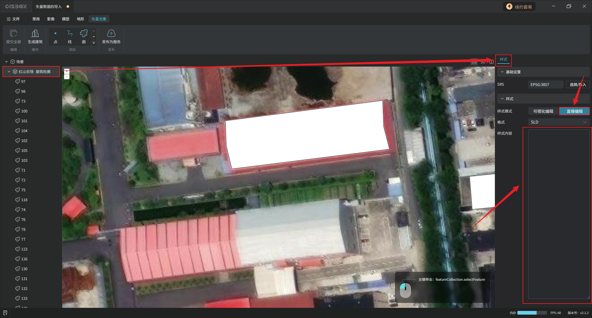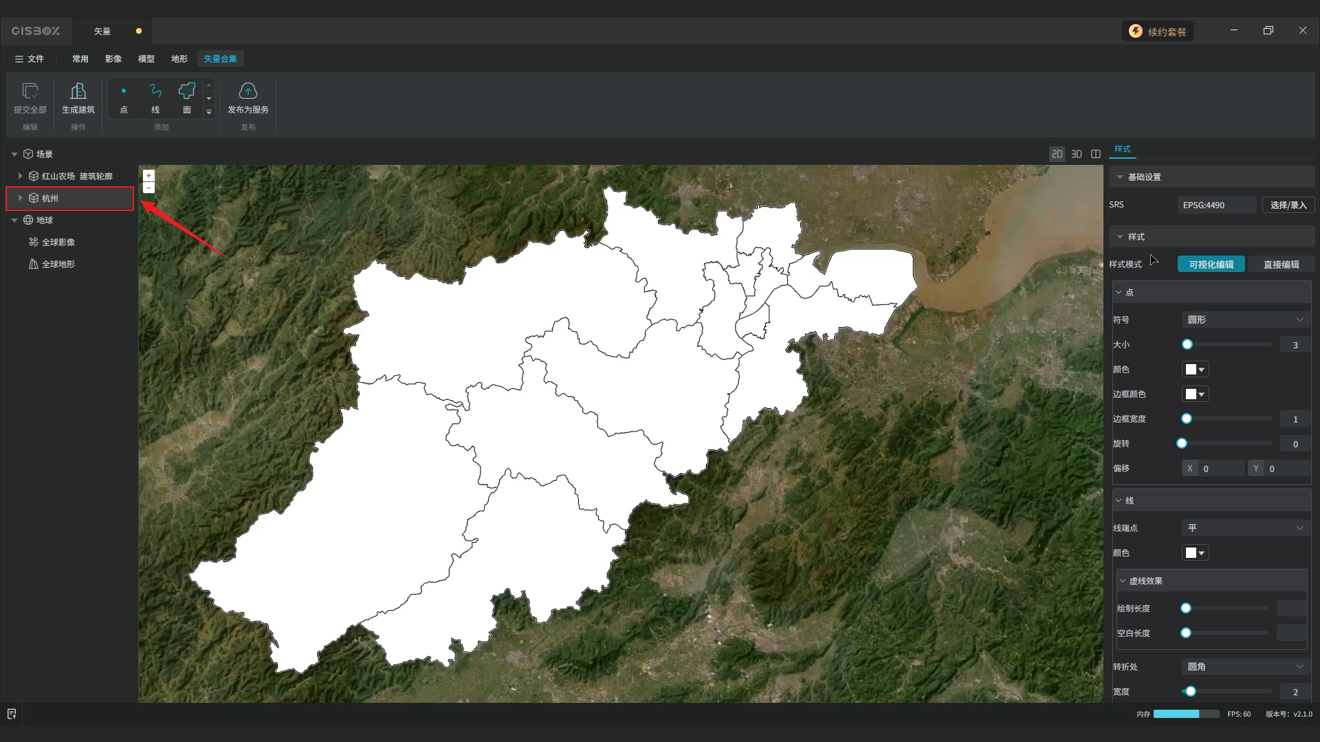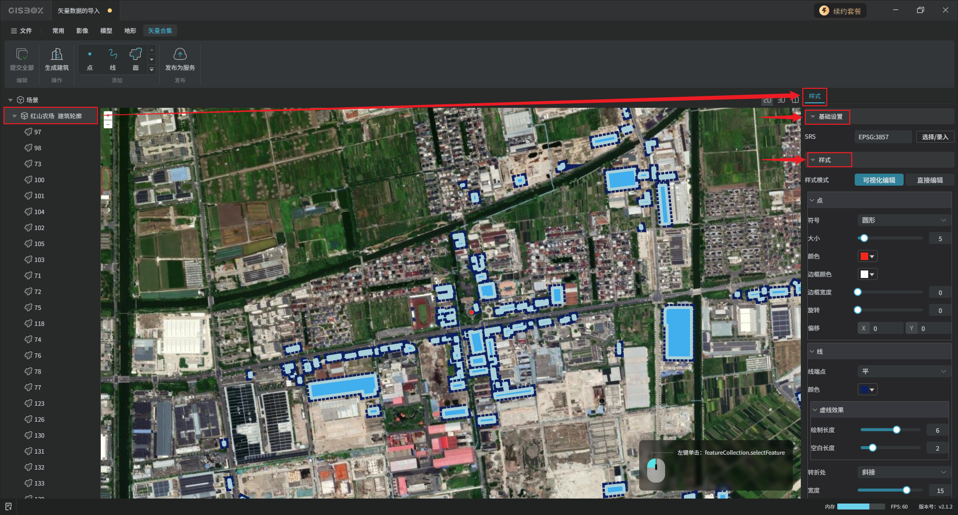 在“样式”设置项,可以调整矢量模型的样式,有两种调整方式:可视化编辑和直接编辑。