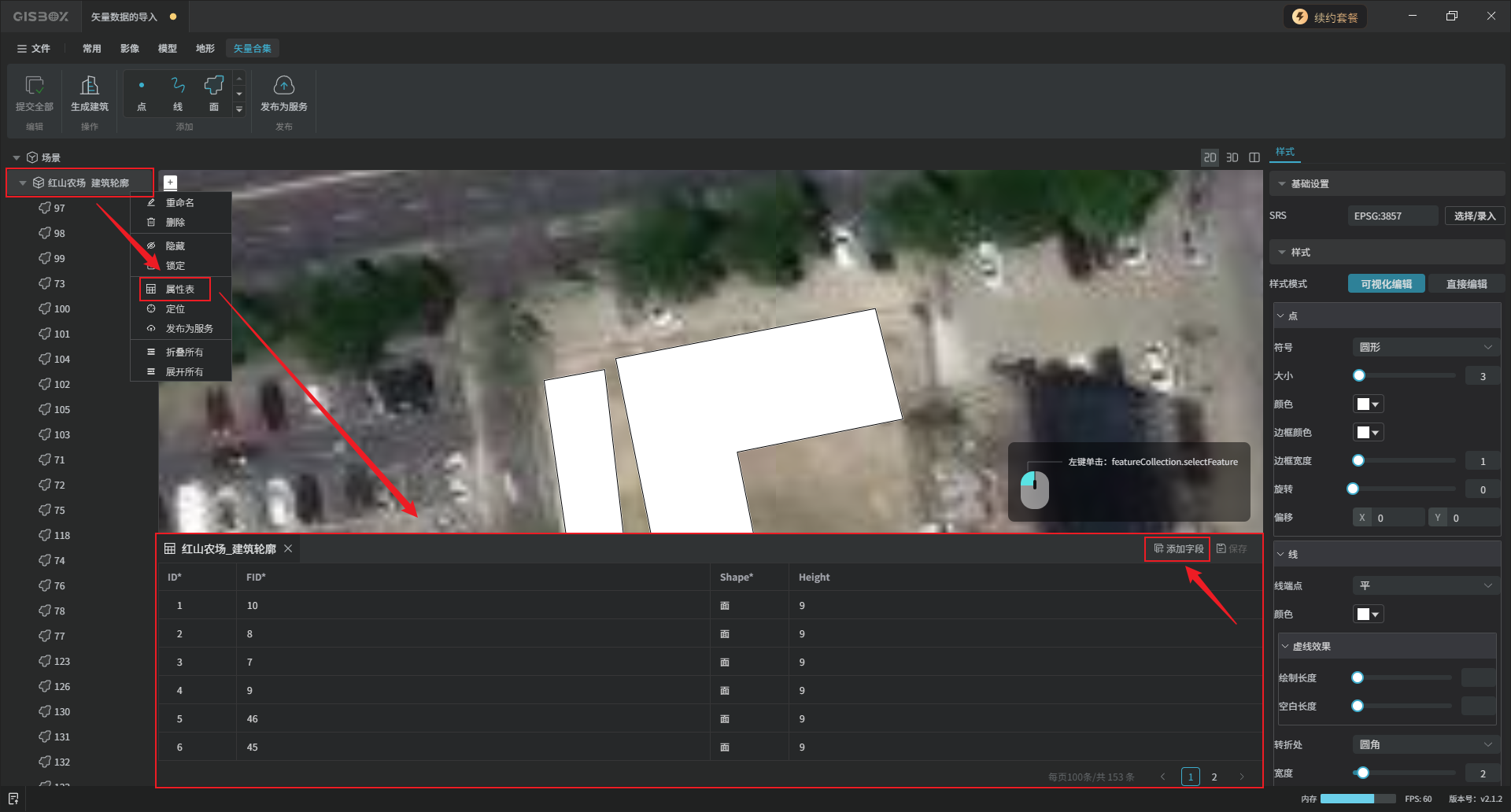 鼠标右键单击矢量合集图层,打开“属性表”,可以批量修改合集中矢量的属性,以及“添加字段”操作。