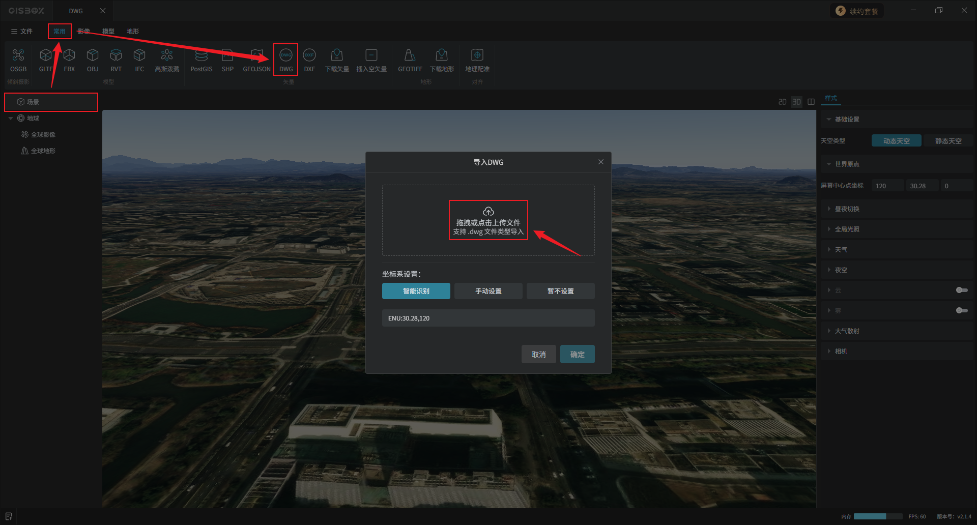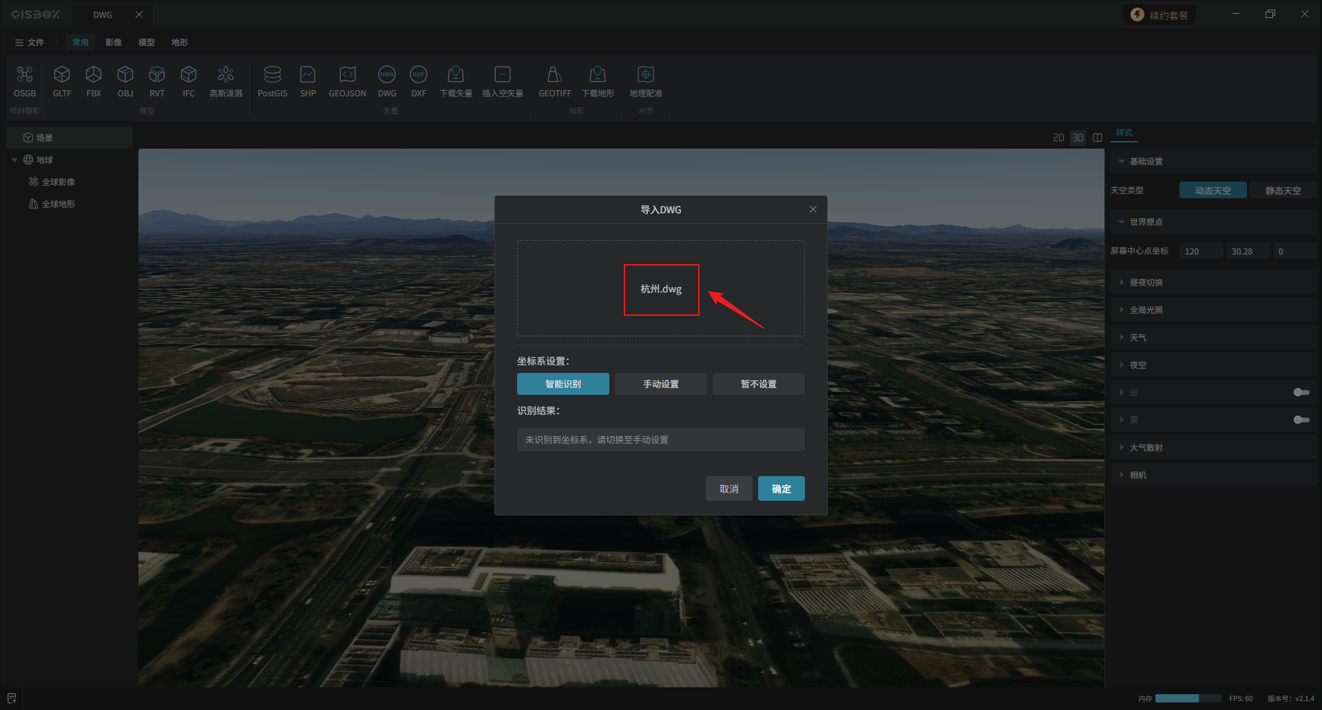 “坐标系”的设置方式与DWG矢量数据的方式类似,在这里不展开介绍,不熟悉的话可以移步: