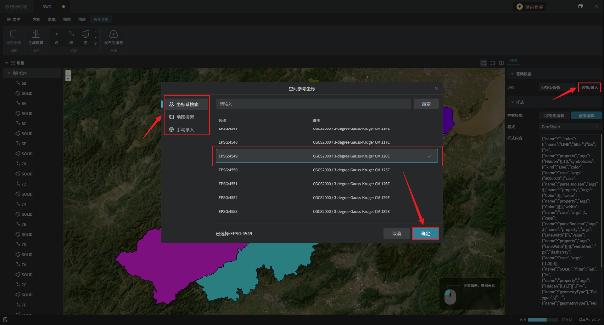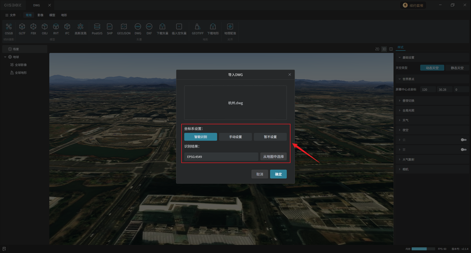 在“基础设置”中,可以设置“SRS”,即矢量模型的绝对坐标,保证无论在哪个平台中浏览该模型都能够定位到准确位置。