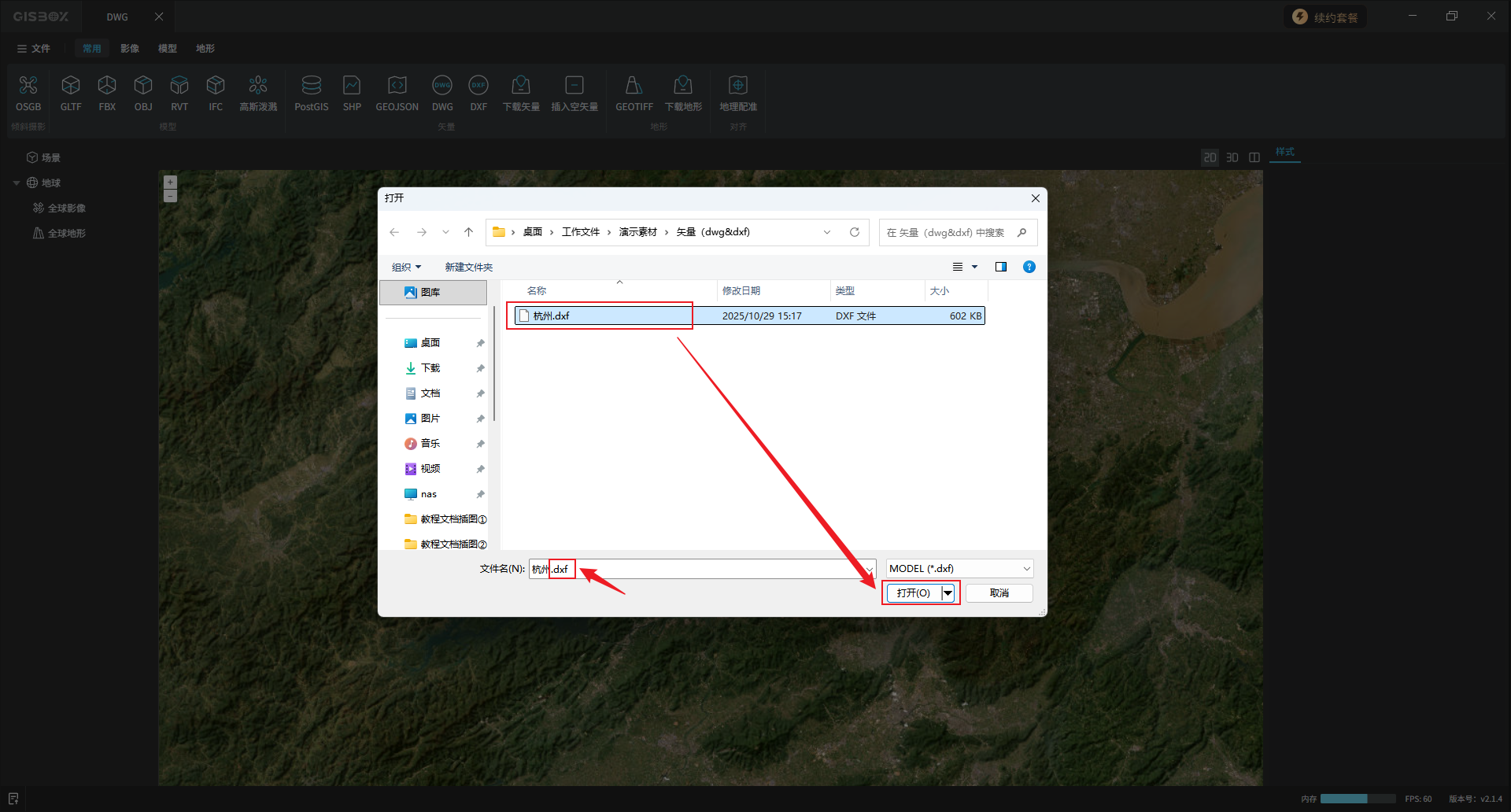 选择后缀为“dxf”的文件,点击“打开”。