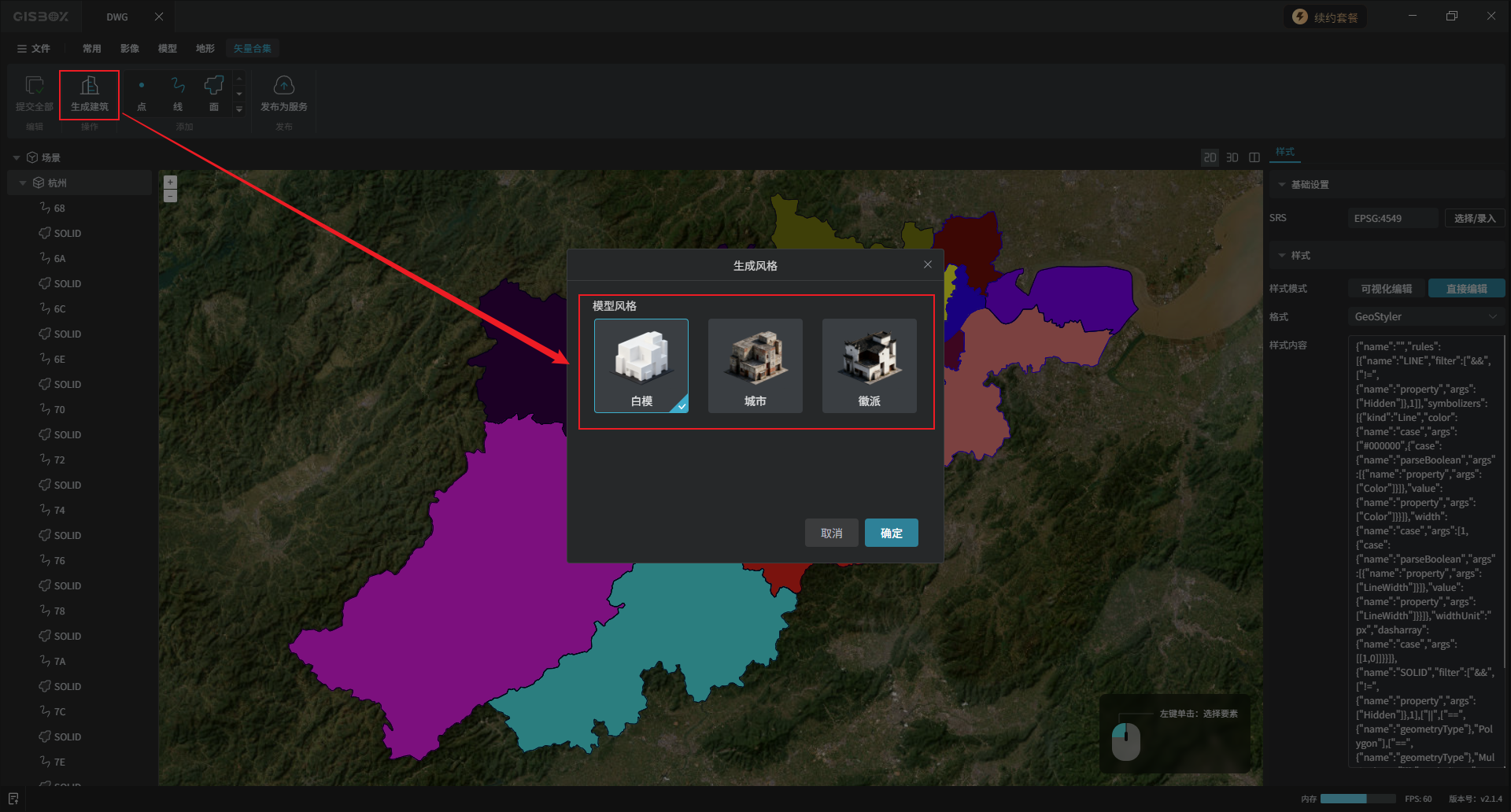 还可以选择不同风格一键生成建筑。