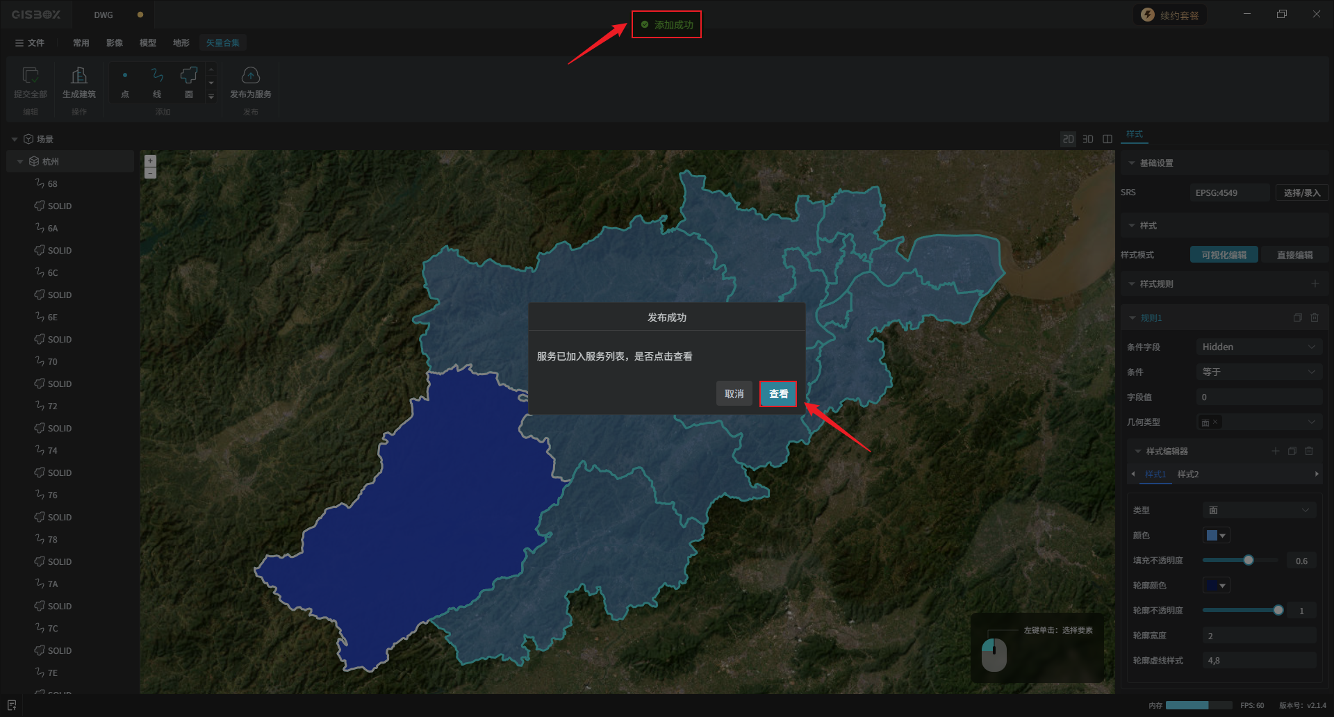 【温馨提示】预览时显示的样式取决于在GISBox中发布服务时应用的样式。由于我们当前是在“可视化编辑”样式下发布的服务,因此显示的是这个样式。