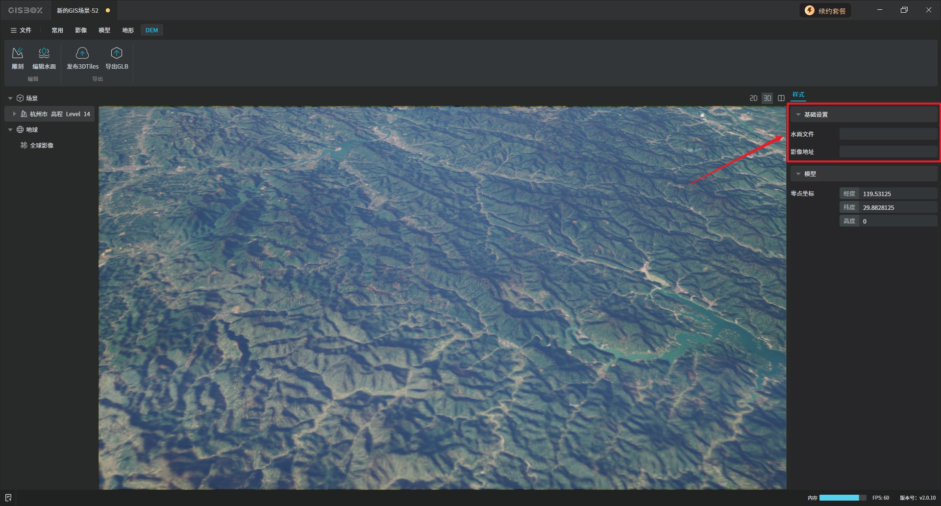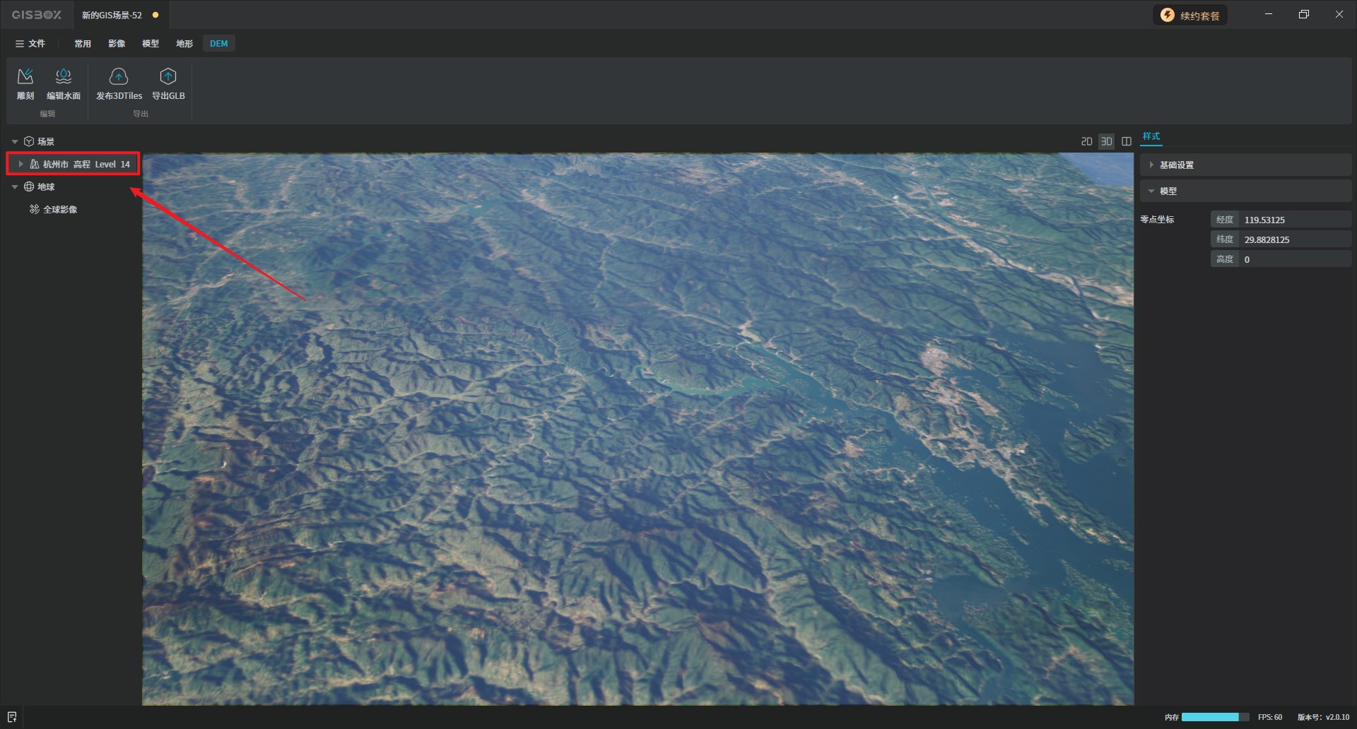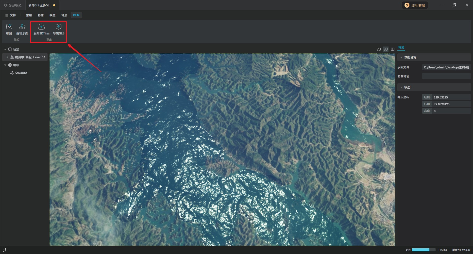 GISBox(GIS 工具箱)在场景编辑模块中提供了DEM(geotiff)地形的编辑功能,其中支持对山体进行抬升、下压以及对水体进行涂抹擦除等编辑操作和发布为服务。本文将为大家介绍一下具体的操作。