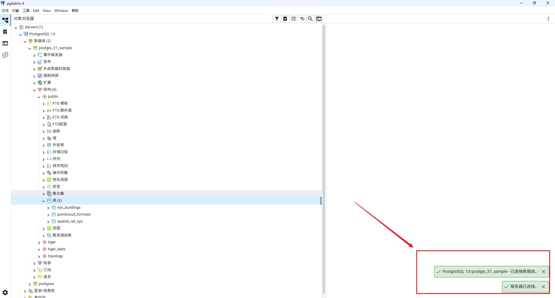 想要成功获取PostGIS矢量数据时,我们要检查一下postgretsql和postgis插件是不是安装并连接成功了,由于postgis是内嵌在postgretsql里面的插件,我们需要按顺序安装。具体的安装过程,大家可以自行查找资料。