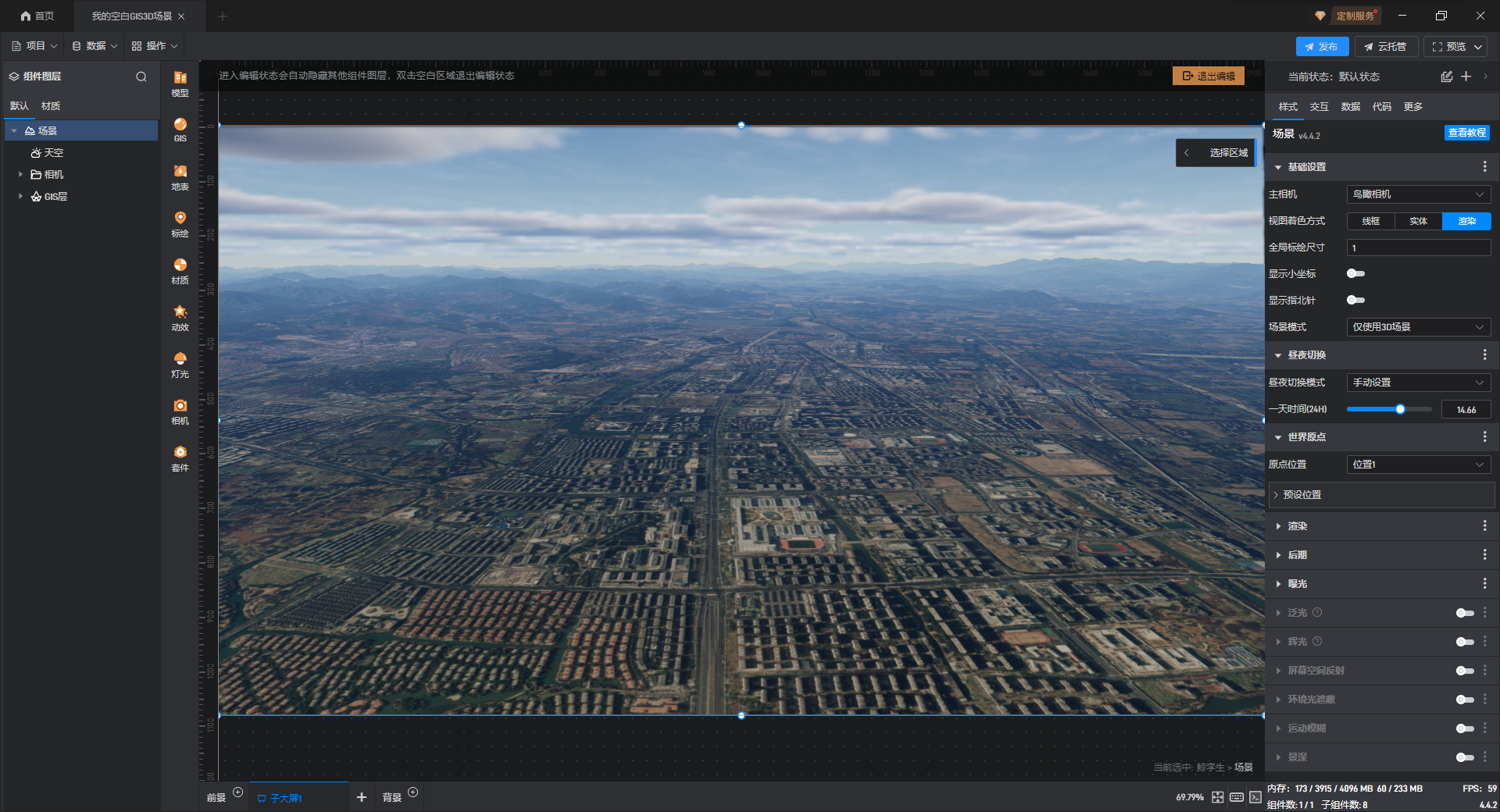 点击左侧的 3D 地理信息(GIS),选择“空白 GIS3D 场景”,再输入项目名称,最后点击“创建项目”按钮。