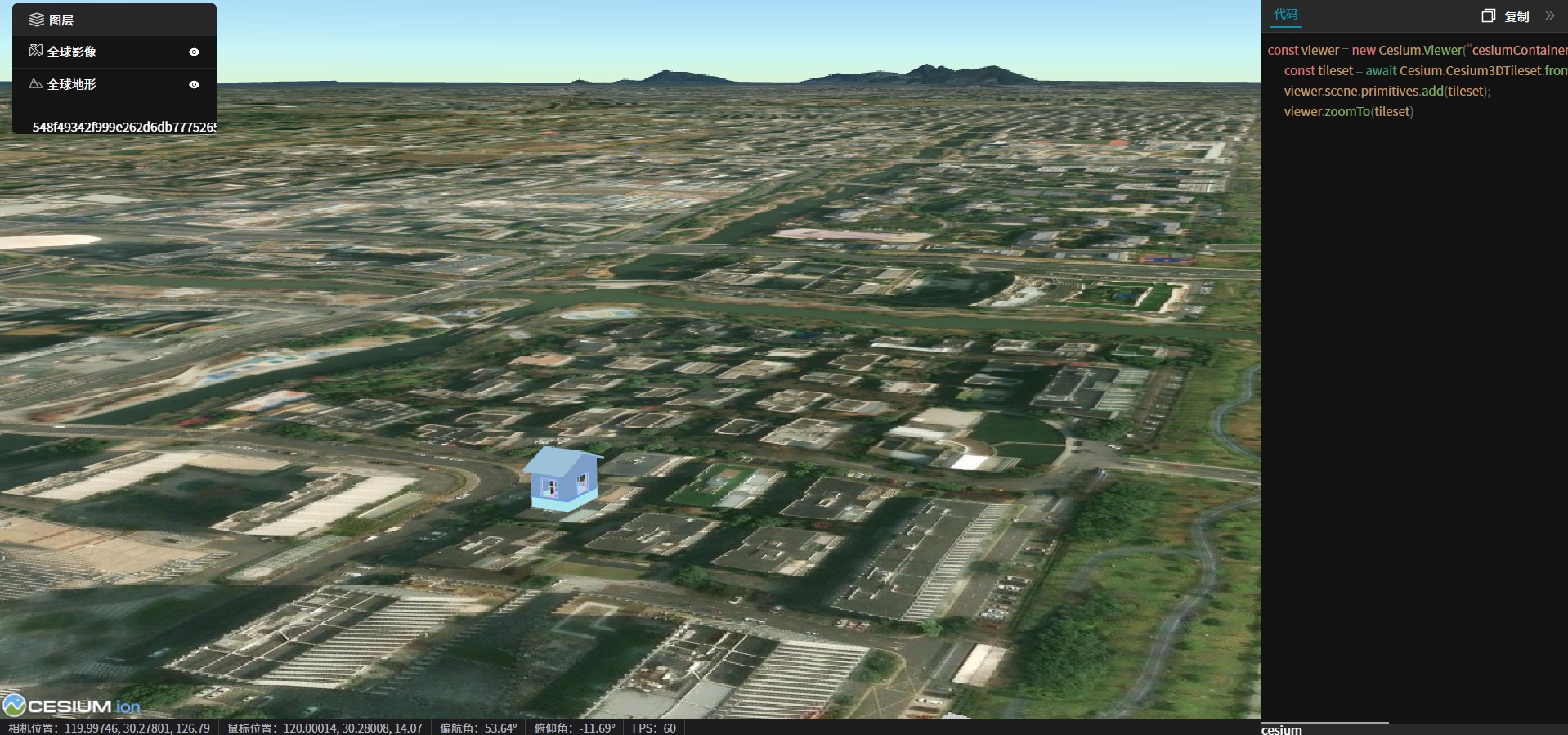 点击“cesium”预览按钮,即可在浏览器中预览效果,如下图所示: