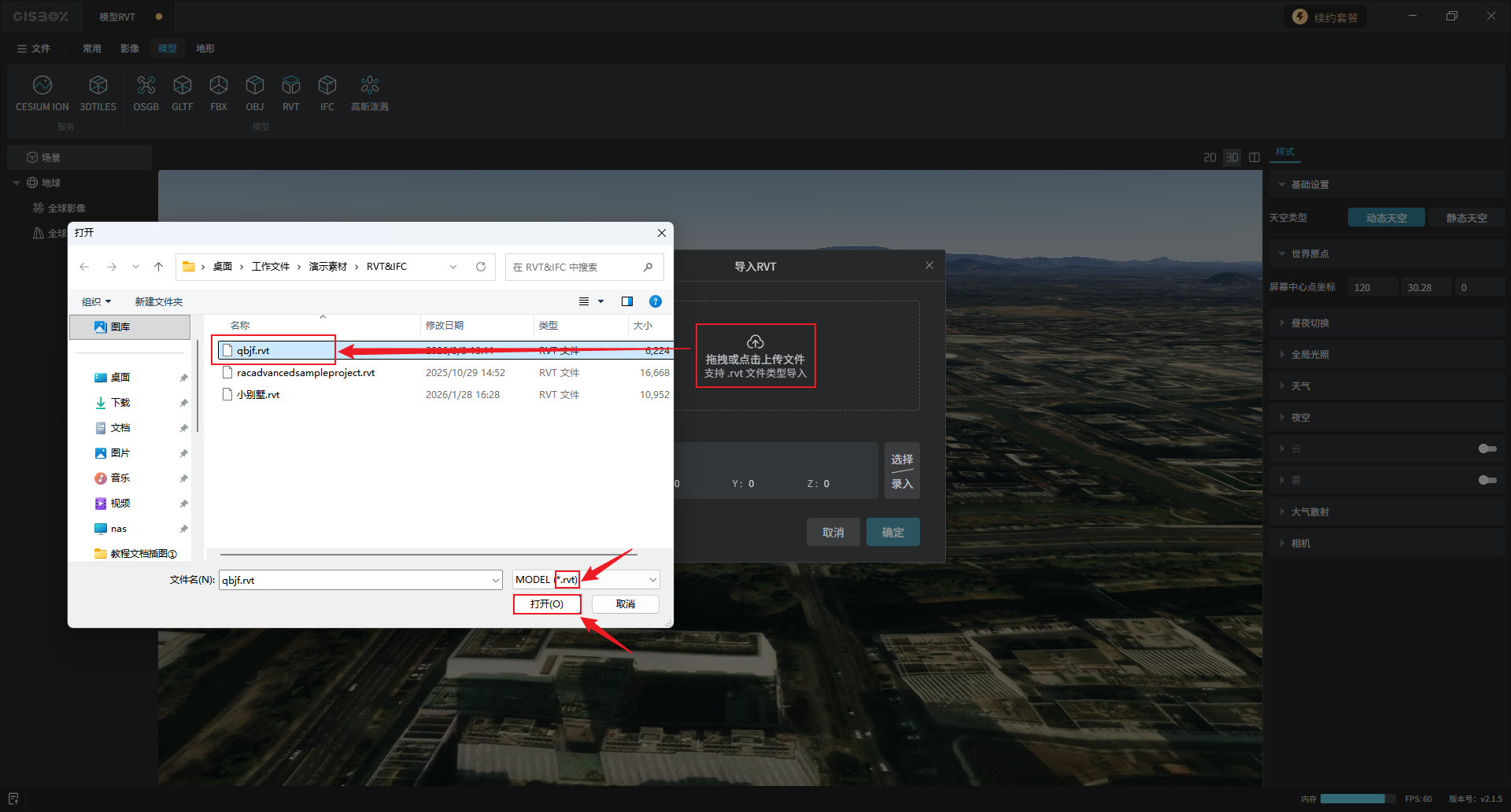 可以“拖拽”或“点击上传文件”,选择rvt文件,点击“打开”。