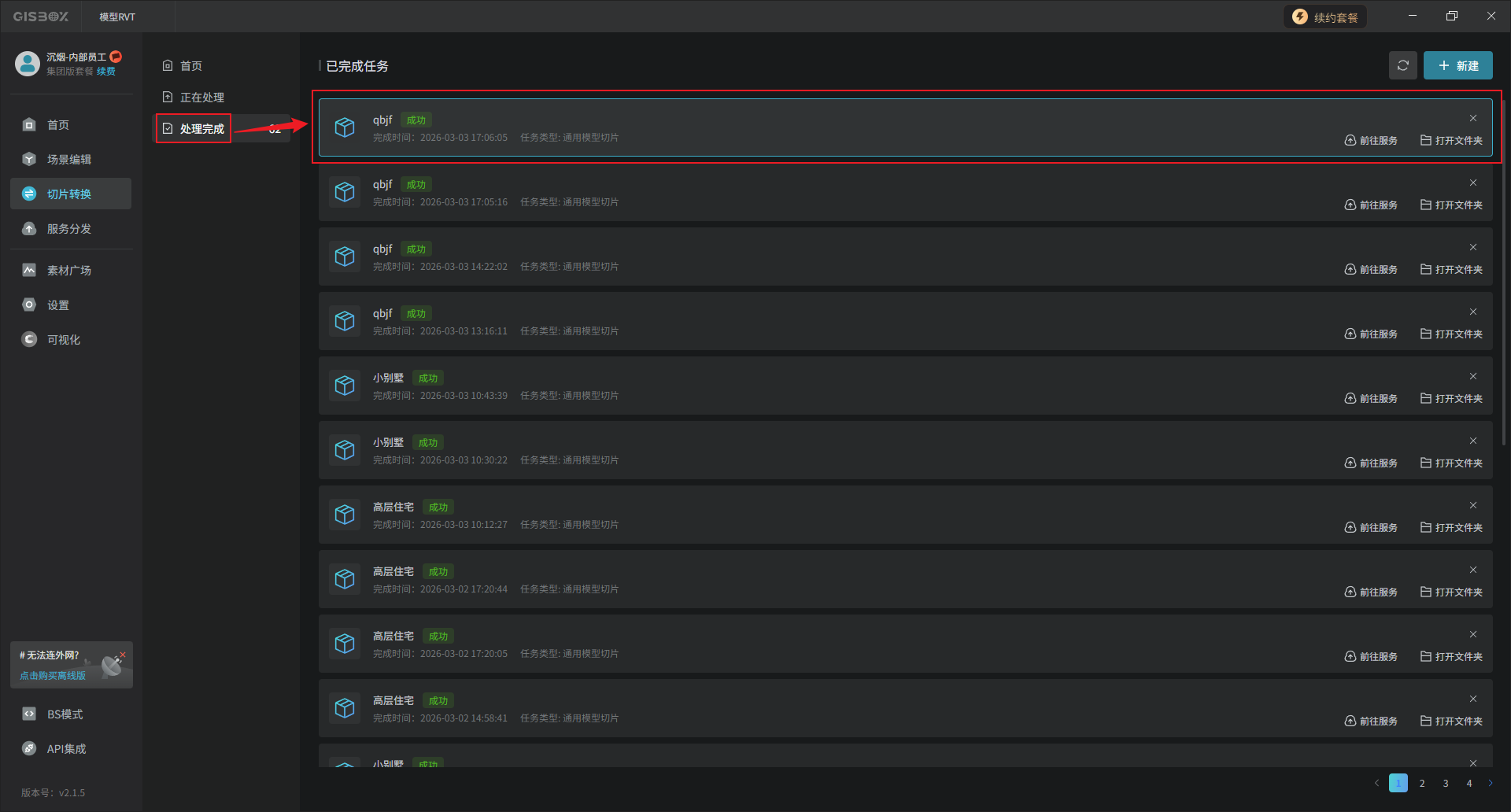 跳转至“切片转换”任务处理列表。