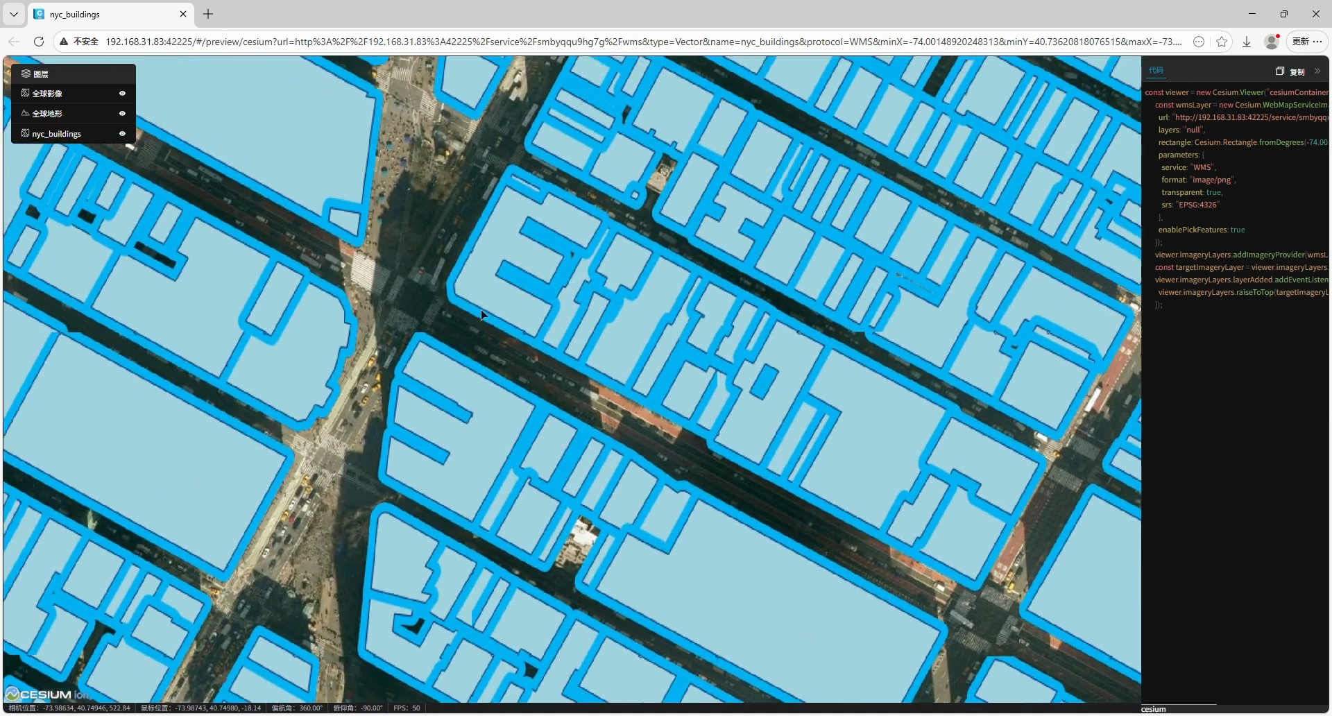 生成的服务地址可以被应用到cesium等GIS平台中,也可以应用于山海鲸可视化等包含GIS的数字孪生平台中。